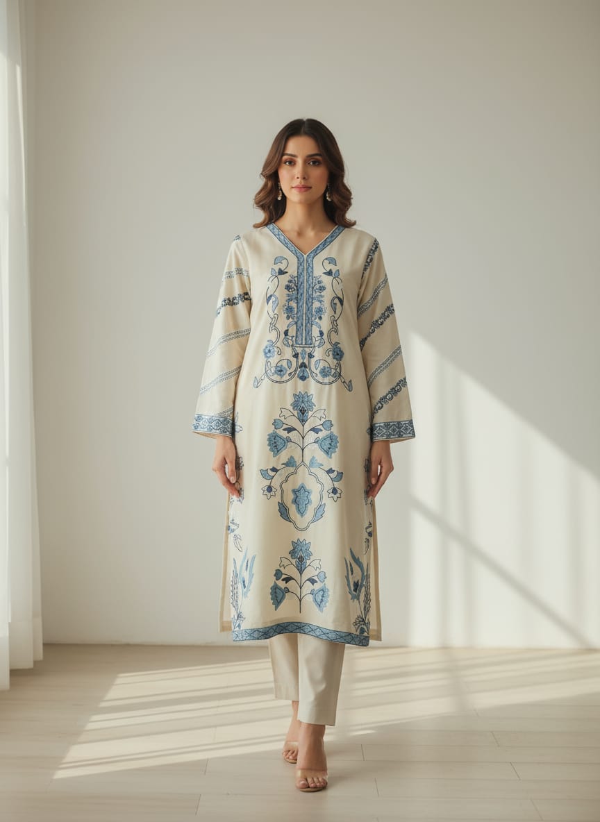 FULLU EMB SHIRT WITH + PLAIN TROUSER